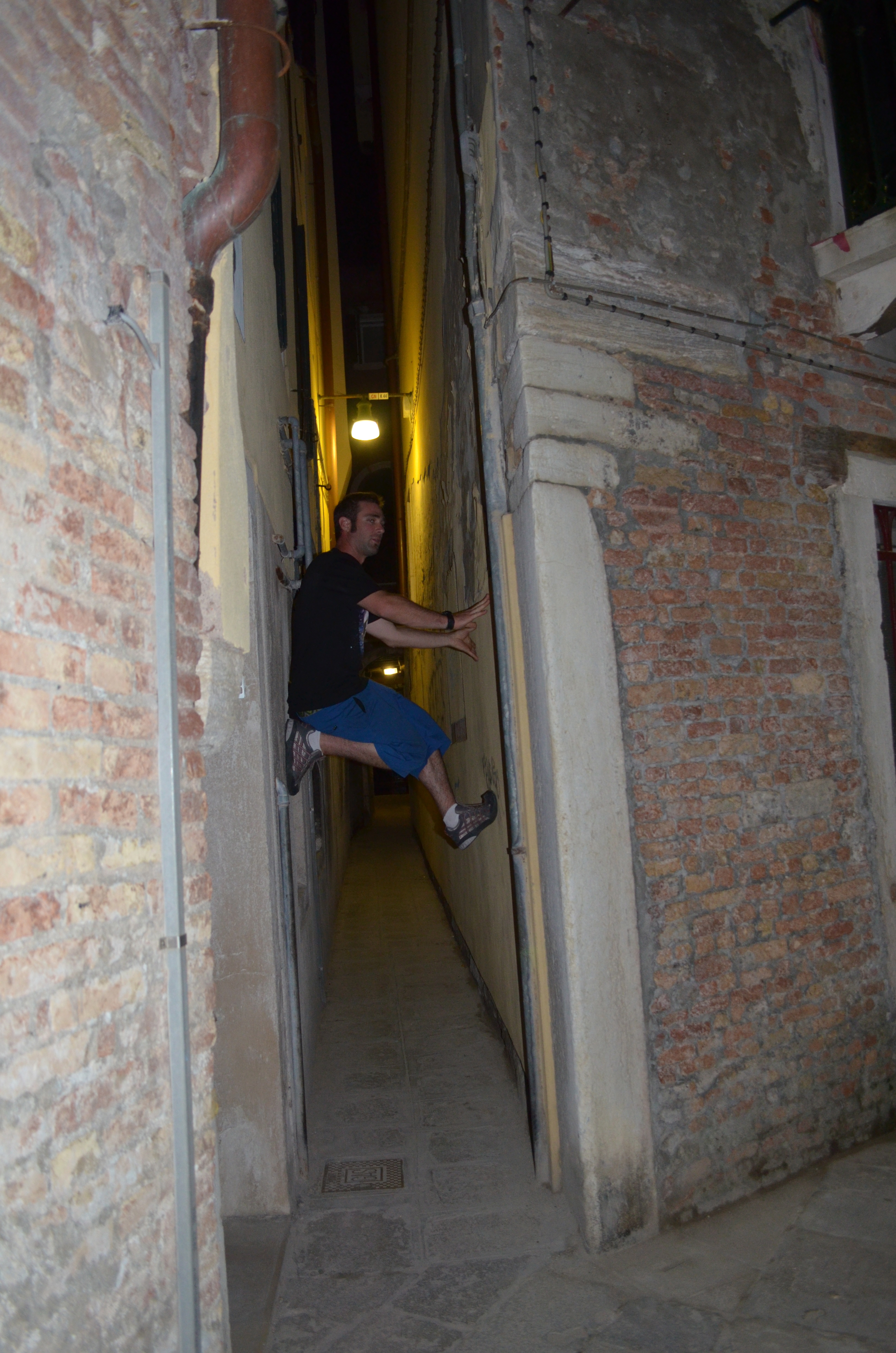 But hours later, Randy and I were still wandering Venice’s maze of alleys. We had pretty much given up on finding this “locals only” spot and were now entertaining ourselves by posing and taking photos in the crevasse-like alleyways that stretch from the main pedestrian avenues.