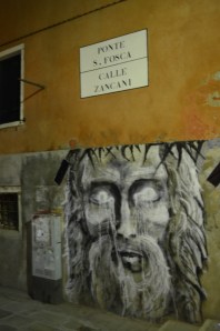 Haunting art in a Venice alleyway.