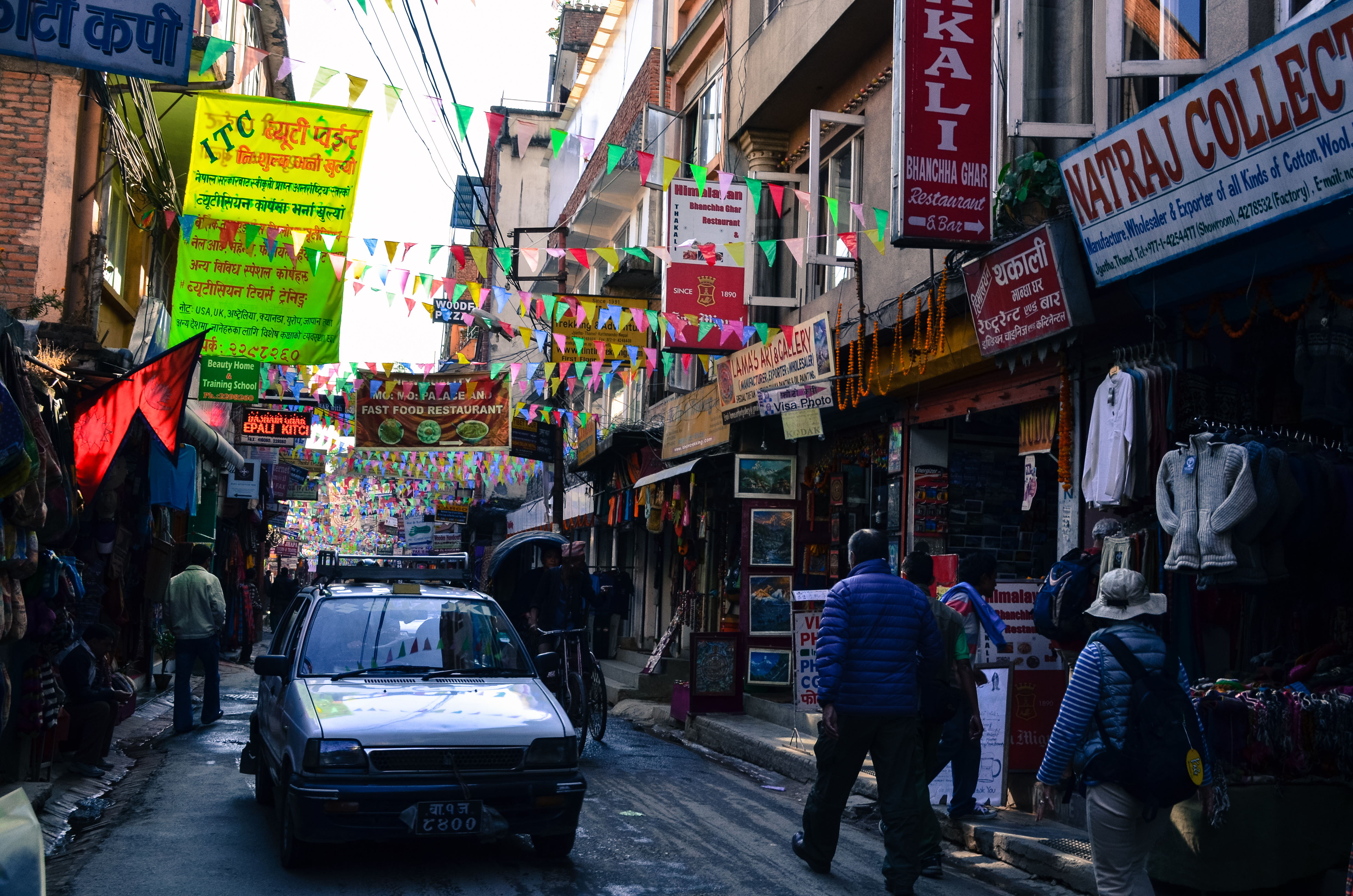 The streets of  Thamel – the trendy backpacker enclave of Kathmandu – were just beginning to oscillate as store owners, pedaling handmade wool sweaters and hats, religious trinkets, silver and turquoise earrings, gaudy beaded necklaces, alpaca scarves, oil paintings, and knock-off North Face and Pataguchi, solicited potential customers, mustering their best English phrases: “Hello, welcome please. I have great deal for you!”