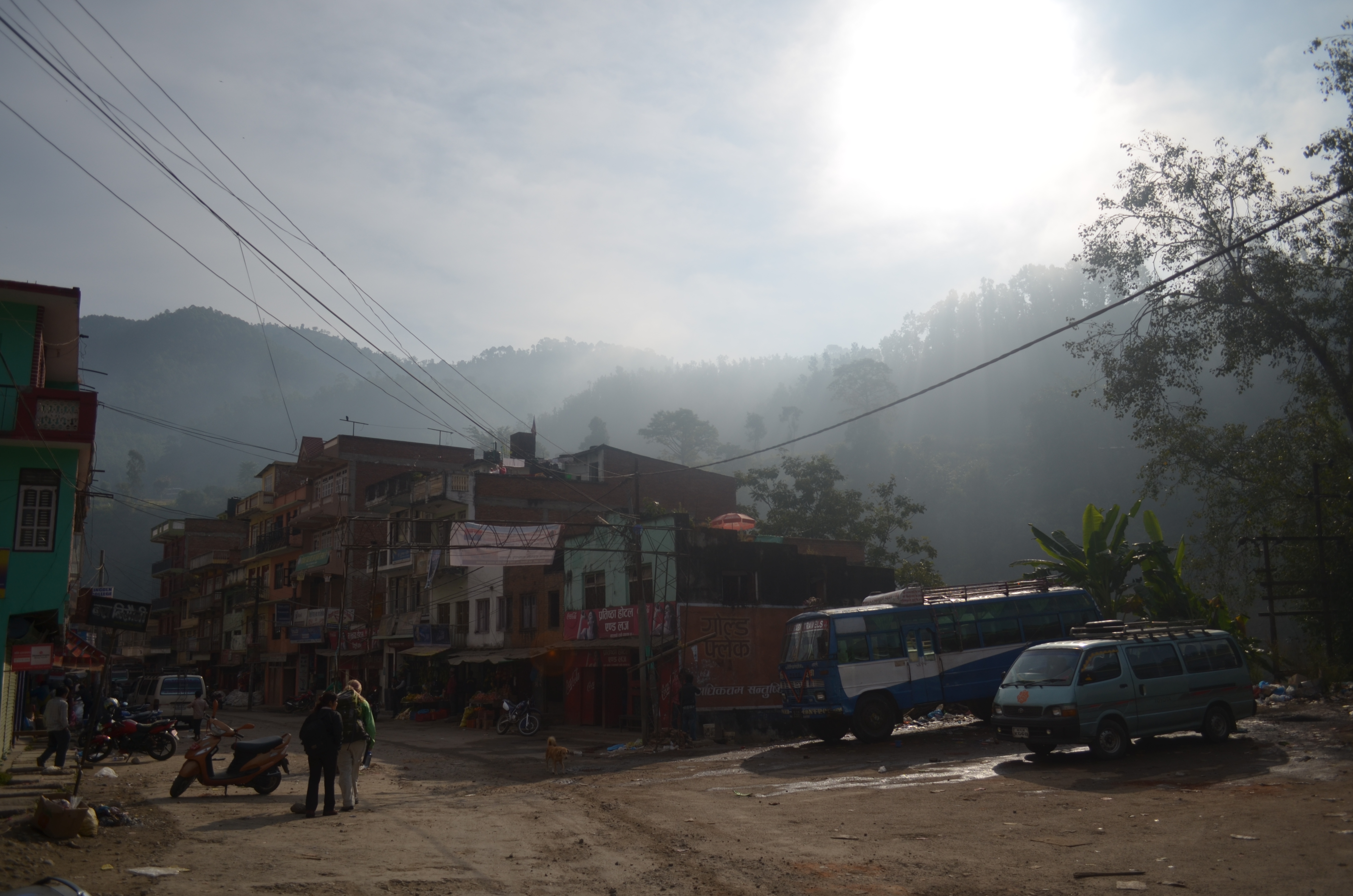 Jess awoke to find that ants had invaded her backpack and were happily snacking on the nice German chocolate bar she had bought for the trek. We made the mistake of eating yet another meal at this dumpy cesspool before heading down the street to the bus ‘station.’ But when we arrived, all the busses were full. Bimala, of course, had not pre-arranged tickets for us. The alarms in my head were growing louder.
